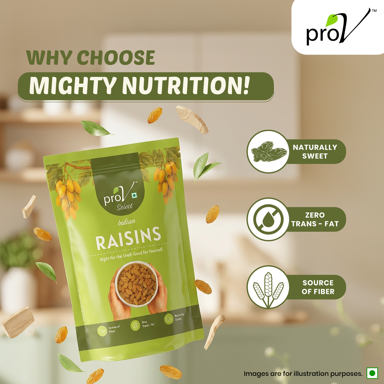 ProV Select Indian Raisins are carefully chosen for their natural sweetness, plumpness and flavour. They are uniformly graded, clean, stem-free and hygienically packed to ensure a soft, juicy bite in every handful, making them ideal for snacking, cooking and baking.