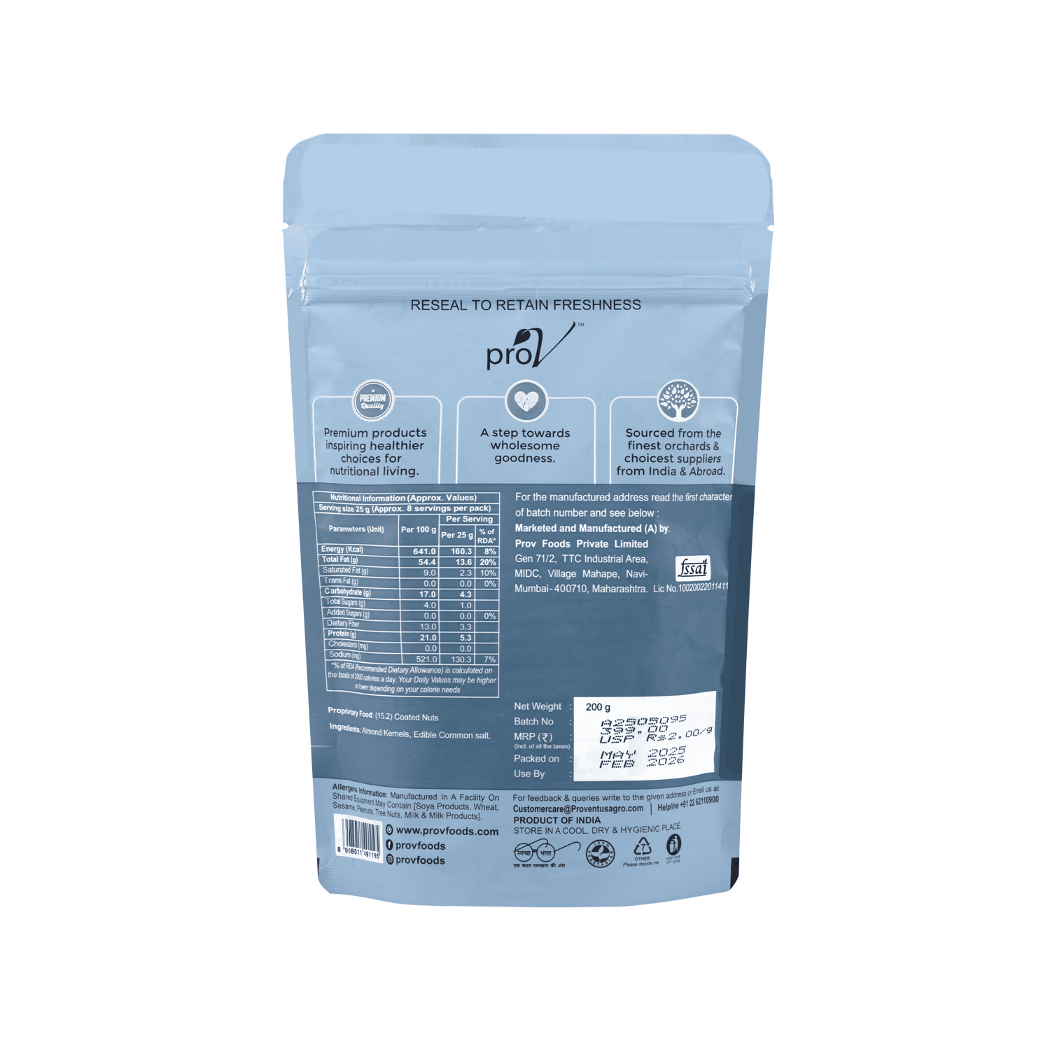 Snack with Satisfaction: Indulge your cravings guilt-free. ProV Flavours - Almonds Roasted & Salted 200g is more than just a snack; it's a savory escape that satisfies your taste buds.